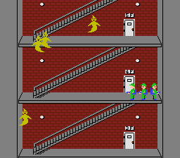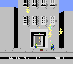 ![]() After a set time within the game, you have to go to the building at the center of the map, and you have to go up the stairs - here, the game switches to a side-scroller, where you have to evade the ghosts as you go up. Now, in all games known to man (and women, of course ^^), you move your characters using the control pad. It's almost a set law of nature. But the Activision designers said "Nah, let's do something different" - and the result is, that for every step the guys have to take, you have to press the A button! Think this: The ghosts are approaching; you try to escape, but you can't - why? Because you're too tired of climbing and pressing the A button! And you have to climb more than 20 floors! *wrist cramp - GAH!* And after that torture, they still expect you to fight Zuul, who's attacking you with rays, and the two dogs that protect her are shooting at you, and on top of that, there's ghosts coming from everywhere, and you have to kill her before the Stay-Puft Marshmallow Man gets to the top of the building! And if that's not enough torture for you... just wait for the ending... my god! I've never been as frickin' angry with any game ending as I was with this one!