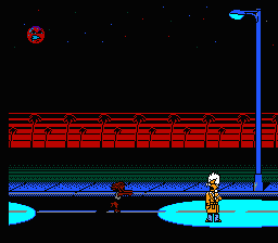 ![]() The level design is actually pretty good. In the first level, the streets of San Zucchini, you just go to the right; but after that, the entire game turns into a maze: The sewers are, in part, linear, but after a while, you have to navigate the maze that the sewers are. Before you advance in Gangrene's mansion, you have to figure out a way to get to the ceiling, and after, you have to navigate the mansion's air conditioning system. The following stages are huge mazes; luckily, there's lots of energy bags around. The graphics use black too much. They're well made, and have nice touches (like the shadowing of the sprites when you move out of a street lamp's reach) but some images really look weird (take a look at Gangrene on one of the pictures in the review; he's that green blob that seems to have a white banana on top of him). The final level is a true marathon; but the ending... my god... I thought I was robbed when I beat Ghostbusters... this is much worse!