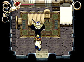The main character, Leon, is to become the new Spirit King, and using his Golden Armband, he must gather the 6 Elemental Spirits (Earth, Water, Fire, Air, Sound, Shade) who will aid him in his quest to vanquish Agito, the evil spirit. While not exactly the most original plot, the storyline is connected with the core gameplay in every way. And that gameplay is pure gold. The Spirits, once gathered, can be summoned by blasting anything in the environment that corresponds to its element (literally - even enemies) using the Golden Armband. Summoned one at a time, they float around like familiars, following you until dismissed. Each Spirit has 3 different attacks, which can be used to either damage enemies or affect surrounding objects in the environment. You can kill enemies, extinguish fires or freeze water fountains for use as stepping stones, all with the same Elemental Spirit attack. While there are the typical switches to be switched, blocks to be pushed, and keys to be collected, completing dungeons requires you to use the Elemental Spirits in new and inventive ways in different combinations in almost every room. Add to this four different weapon types (which can also be powered up with Elemental energy), and the 12 or so physical moves Leon can perform using various button combinations, and you have an ambitious control scheme on your hands (pun intended). With the Saturn pad's 6 face buttons and 2 triggers in use, it takes some getting used to, but works perfectly.