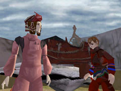 STORYLINE Clearly, anyone familiar with Nausicaa's setting will find plenty of similarities, but since Miyazaki has said he doesn't want any of his films to be made into games, its forgivable. Luckily in this case the designers know when to stray from their source material, and do so liberally, giving us all sorts of interesting people to meet and places to go. Most notable is the design work for the Ancient technology (simultaneously mechanical and biological), as well as Edge's steed Lagi (the "Divine Messenger"), with no less than 30 different evolutionary states, all of which are extremely cool. Early in production of the original Panzer Dragoon, SEGA hired french artist Moebius to conceptualize these things, and his ground-breaking designs continue to flourish.