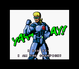 A special commentary: This game was released originally in Japan under the name "Ranma 1/2." That's right, this was a Ranma 1/2 game! The gameplay is the same as the Japanese version, but the characters were altered to the point of not being themselves anymore. Here's the lowdown: Steven [armored] is actually Ranma Saotome! Steven without armor is Ranma-Chan, Tyrone is Genma Saotome, Dozo is actually Kodachi Kunou [What the hell were they smoking; they made a female character into a male one!], G.I. Jim is Tatewaki Kunou, Helmut is Kouchou [The Principal], Lita is Shampoo [!] and C.J. is Ryouga Hibiki! Also, the music is completely different [thank God!], and the graphics are a lot better in that version. Who knows why they changed it. They probably thought that being Ranma 1/2, it wouldn't appeal to the American public. Typical American views... |