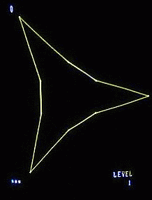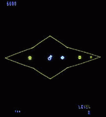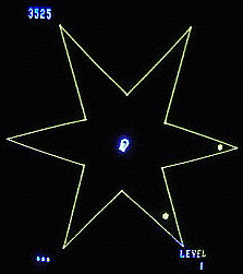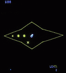 Round and round she goes, where she stops and pukes, nobody knows Ok, so Bedlam's spinning effect (I'll get to that later) isn't that bad -- plus I paraphrased -- but it might make your eyes hurt. Aside from flat-out copying some popular game -- as there's been approximately five million clones of Pac-Man, Breakout, and Space Invaders games ALONE (ok, so I'm just flat-out making that one up just out of thin air) -- there's also good ol' reverse engineering, where you take a certain popular game, change a few aspects of it around, and presto, you've got a new game, like the arcade hit of Star Castle becoming Yars' Revenge for the Atari 2600. And, with Atari not porting it's vector games to the Vectrex (why the hell didn't they DO that?), sole Vectrex games company GCE HAD to bring Tempest to their console. So, Bedlam was born. Being altered from a game where a player was supposed to attack and invade castles instead (hmmm, is that Star Castle again?), this time around, rather than being along the edges of levels in Tempest, your ship is in the center, and all kinds of stuff flies towards YOU. Your enemies range from dumb drone ships that fly towards you without stopping, ones that will stop in their tracks once you face them ( coward , as the Williams Sinistar would say), others that will start circling around you if they get too close (see photo of the x-shaped ship very close to the player's), and a ship that has very powerful shields that can't be destroyed, but can only be pushed back once you shoot it. Nice... Since the Vectrex didn't have a huge screen, the graphics weren't bad, but a couple of ships were hard to tell apart (I'll get to this later). The levels themselves were big, nice geometric shapes though, and the controls worked great, although the sound effects weren't the greatest, just a series of blips and bleeps and all, mostly, with just a slight chance of pitch.